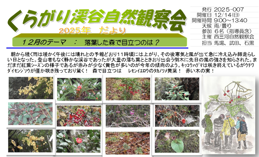• 2025年12月くらがり渓谷自然観察会 観察会だより